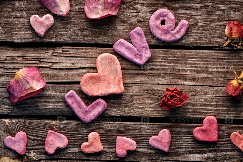 Слово любовь с лепестками роз