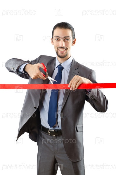 Бизнесмен перерезает финишную ленточку