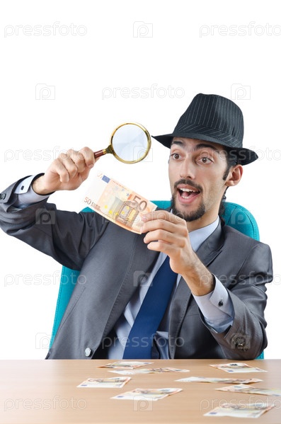 Детектив рассматривает фальшивые евро