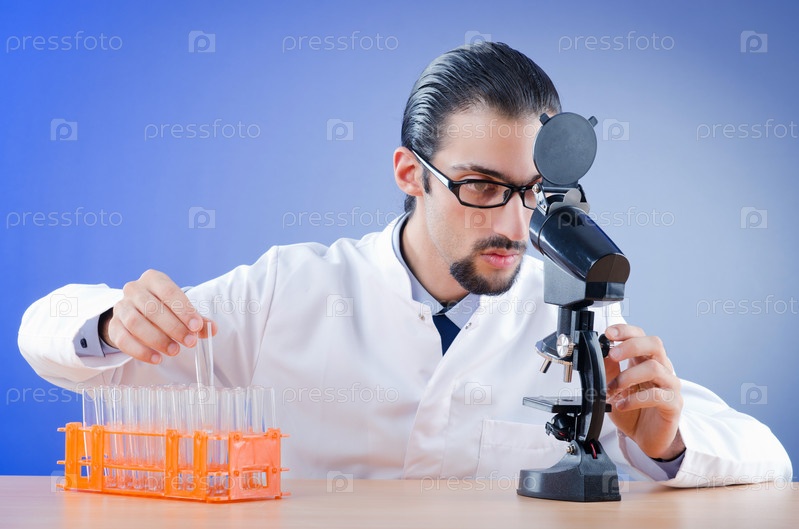 Молодой химик в лаборатории