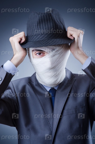 Деловой мужчина с медицинской повязкой на лице