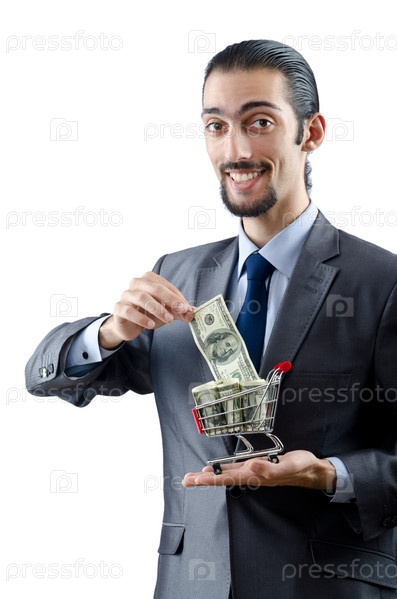 Бизнесмен с корзиной денег