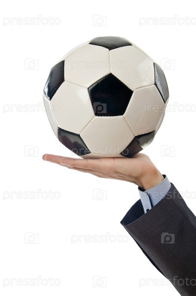 Бизнесмен держит футбольный мяч
