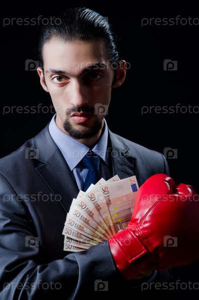 Человек в боксерских перчатках защищает свои деньги
