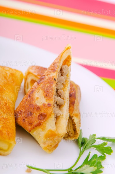 Блинчики с мясом на тарелке