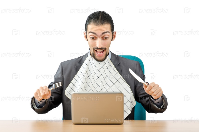Молодой человек собирается есть свой ноутбук