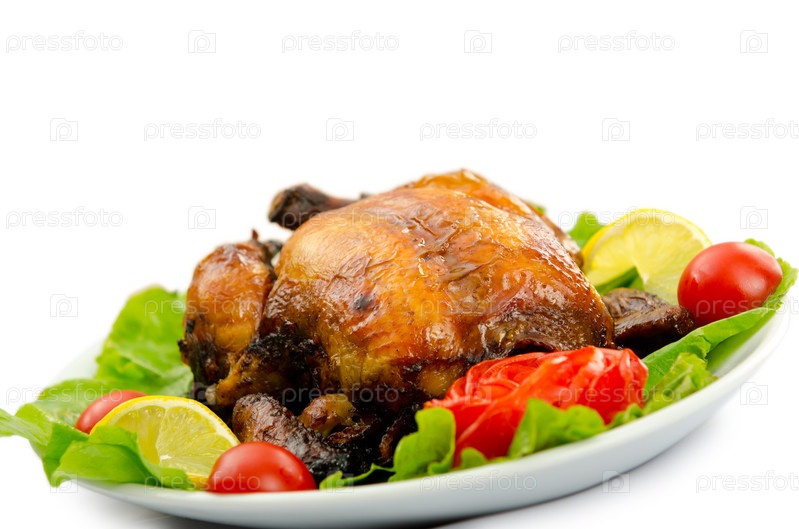 Жареная индейка на белом фоне