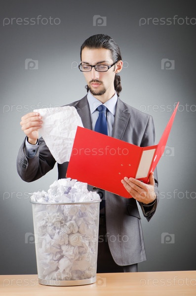 Мужчина с использованной впустую бумагой