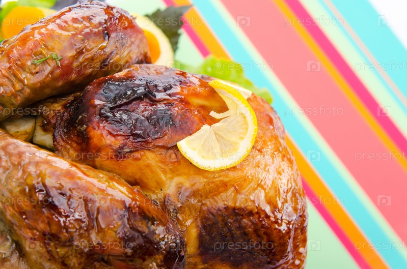 Жареная индейка на столе