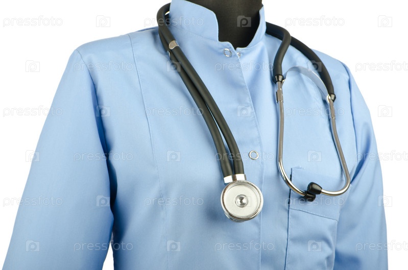 Медицинский халат и стетоскоп, изолировано на белом фоне