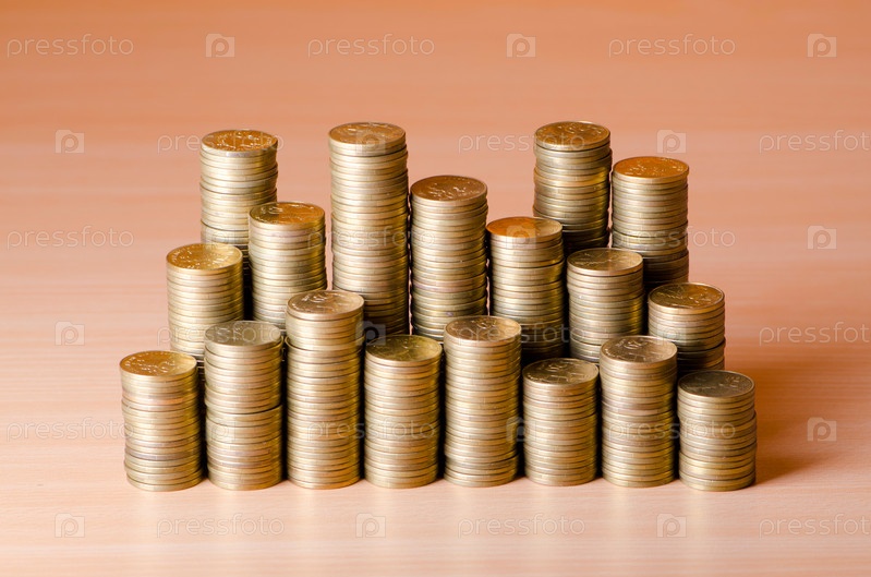 Золотые монеты, сложенные в стопки