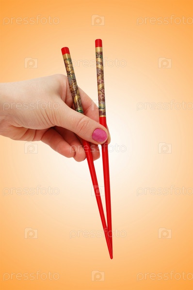 Рука держит палочки для еды