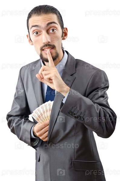 Мужчина с деньгами на белом фоне