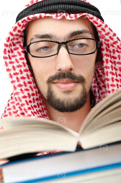 Молодой араб с учебниками. Концепция образования