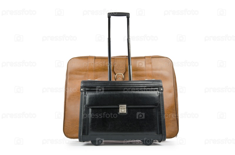 Концепция путешествия - чемоданы на белом фоне
