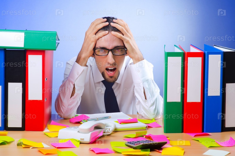 Предприниматель с кучей папок