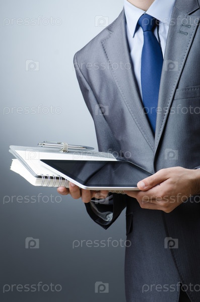 Предприниматель, работающий на планшетном компьютере