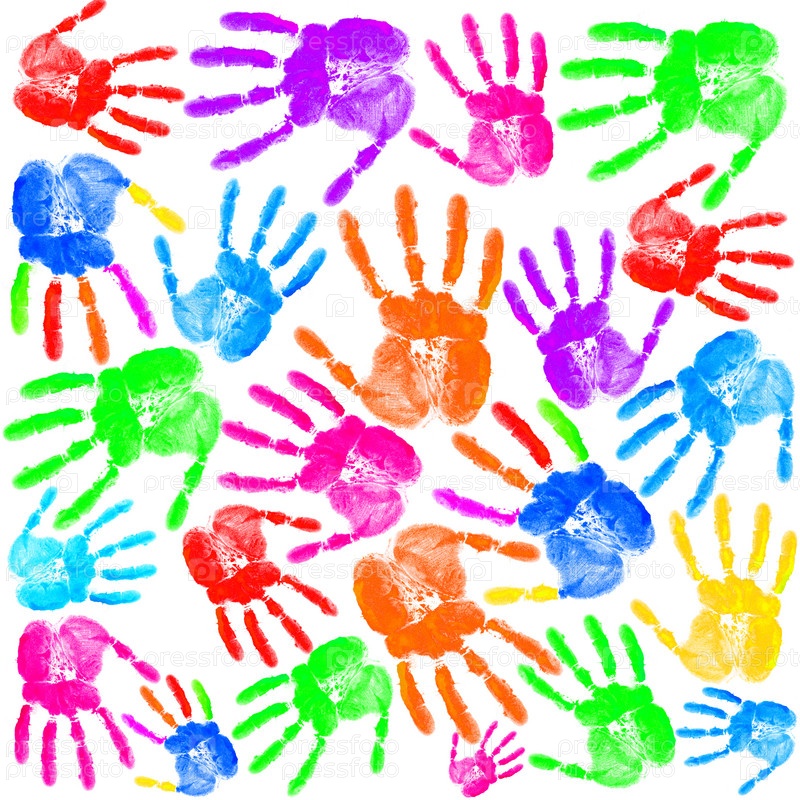 Разноцветные ладони на белом фоне