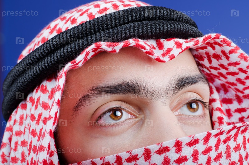 Молодой араб крупным планом на голубом фоне