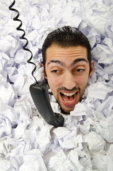 Человек с большим количеством смятой бумаги