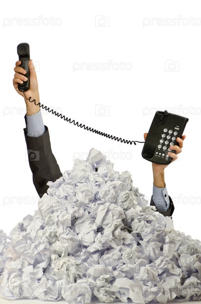 Человек в куче смятой бумаги