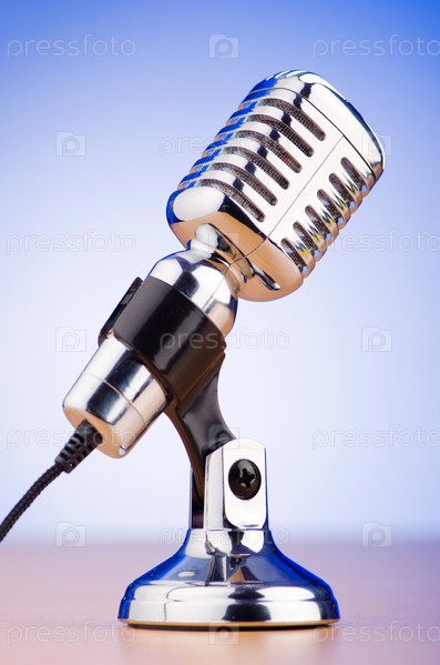 Старинный микрофон на голубом фоне