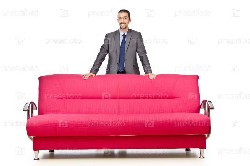 Мужчина стоит за диваном