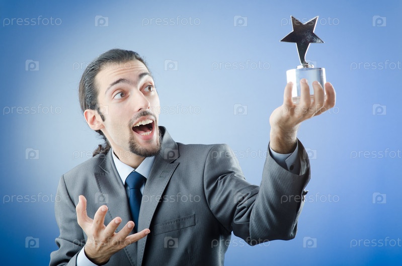 Бизнесмен с наградой в руках