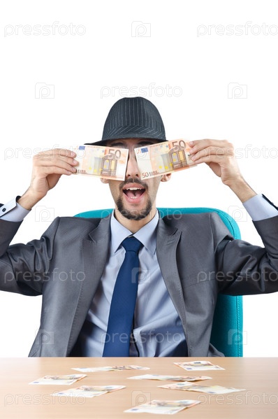 Мужчина с деньгами на белом фоне