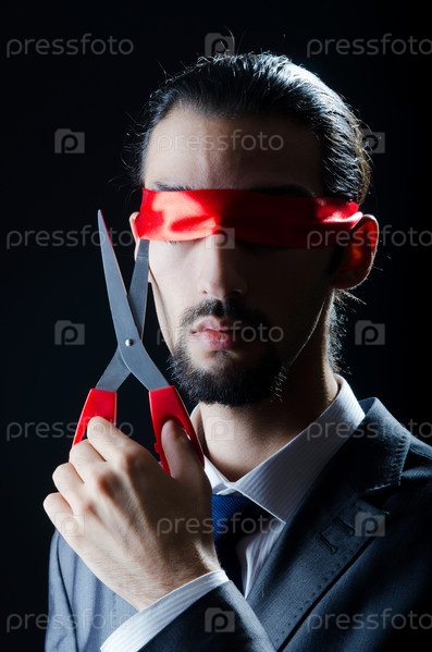 Мужчина режет ленту на глазах