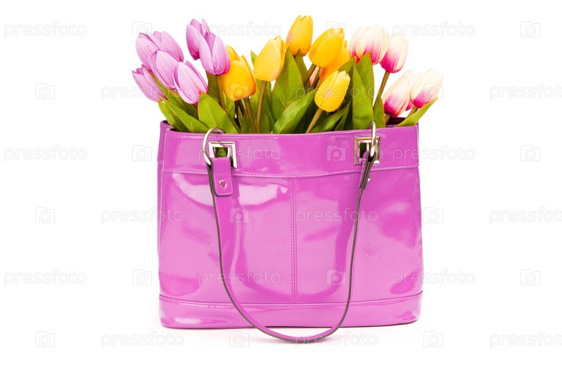 Сумка с цветами, изолированная на белом фоне