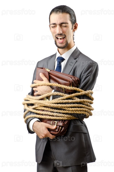 Связанный бизнесмен на белом фоне