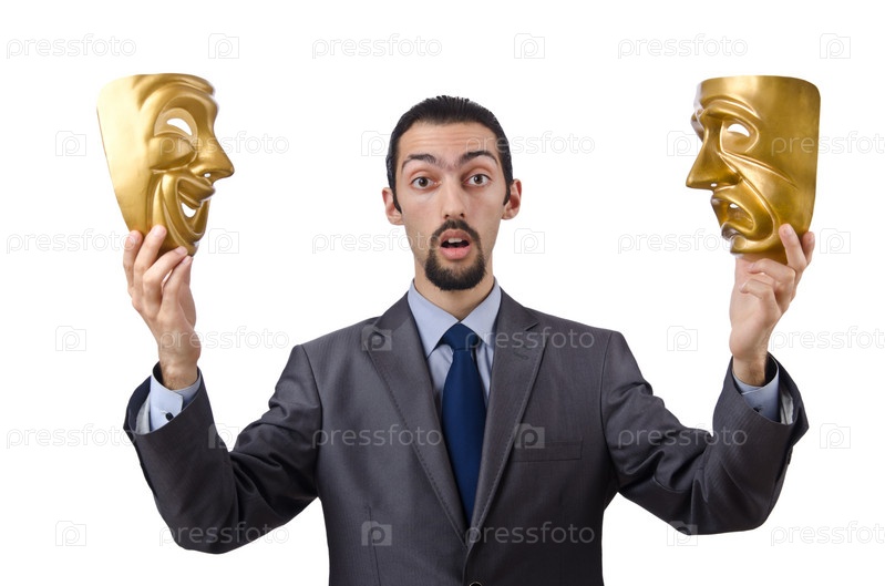 Предприниматель с веселой и грустной маской