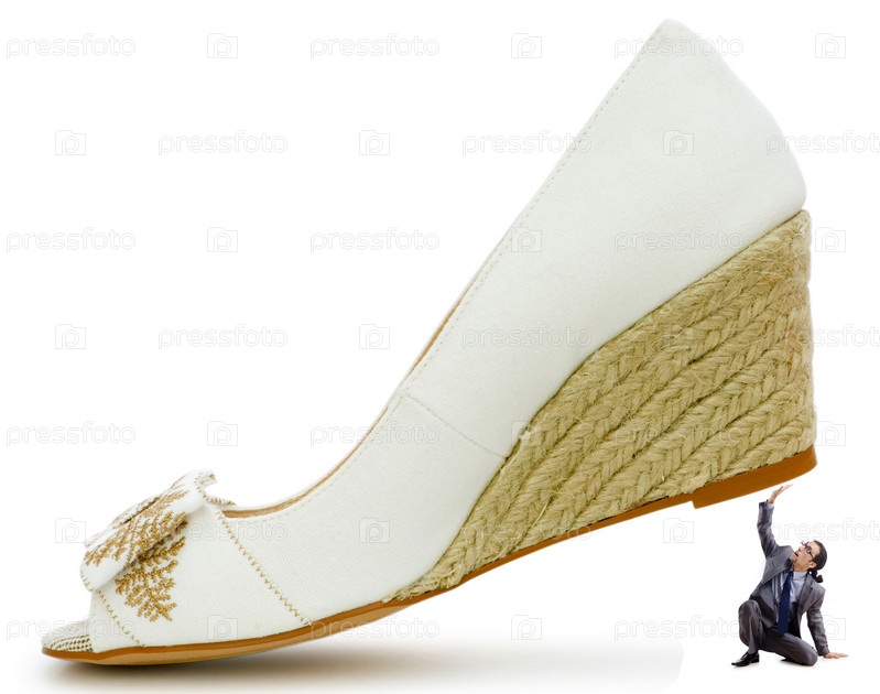 Концепция доминирования - женская обувь над маленьким мужчиной