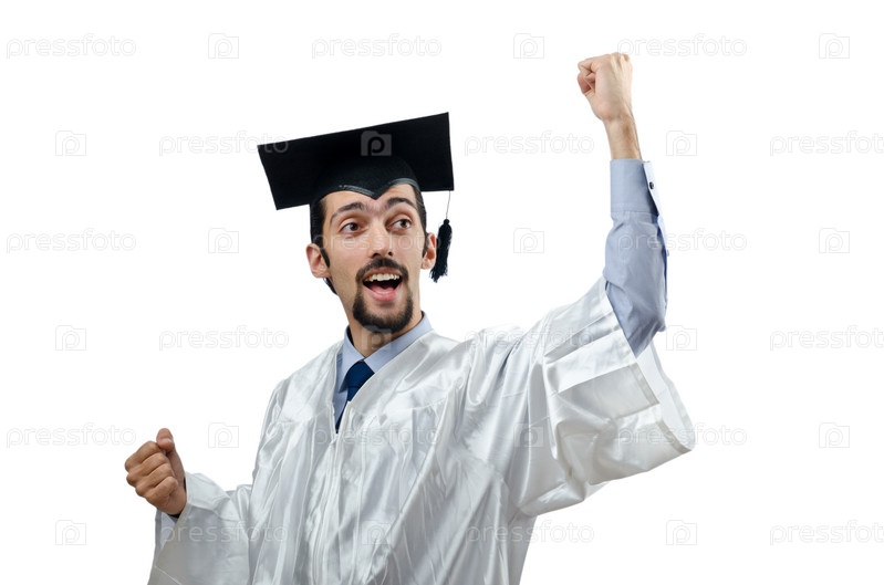 Счастливый выпускник на белом фоне