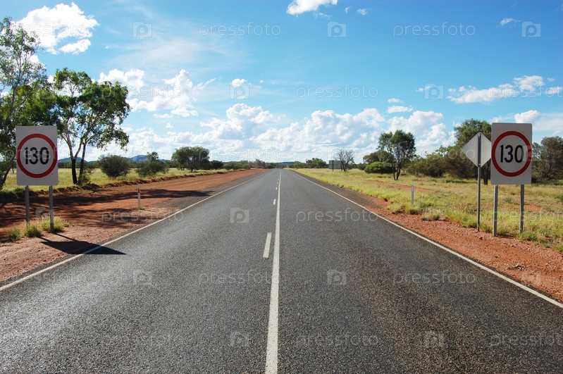 Пустое шоссе с дорожными знаками в Северной территории, Австралия
