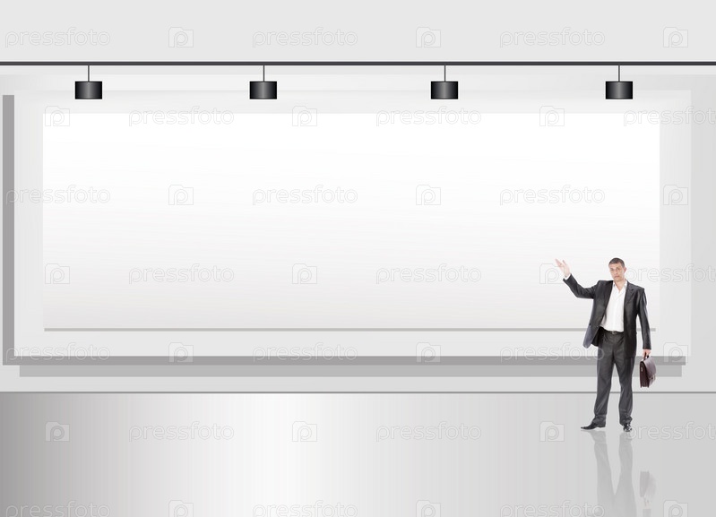 Успешный бизнесмен с портфелем у рекламного щита