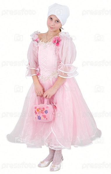 Девушка в розовом платье на белом фоне
