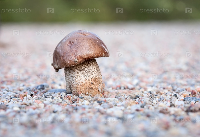 Гриб подберезовик, растущий на каменистой почве