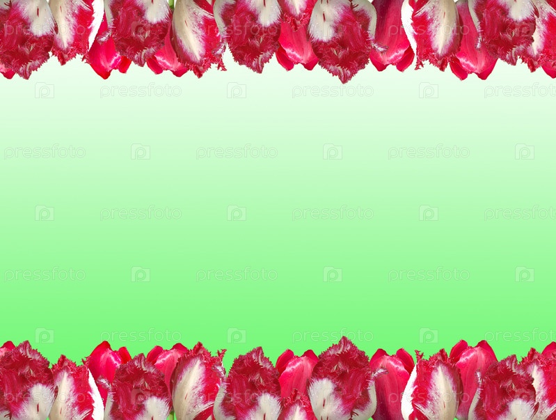 Рамка из красно-белых тюльпанов на зеленом фоне