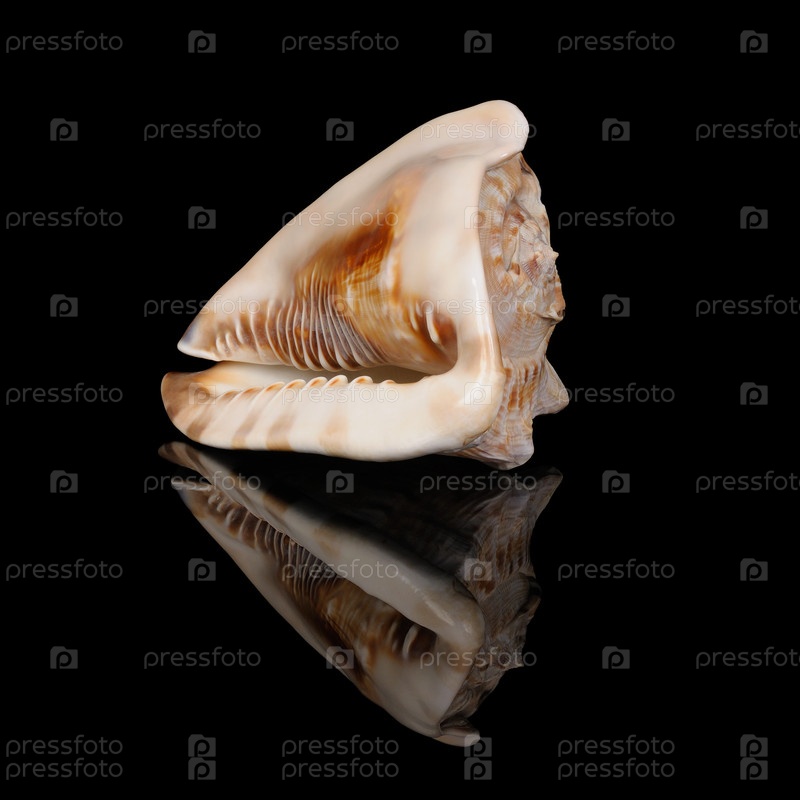 Большая ракушка на черном фоне