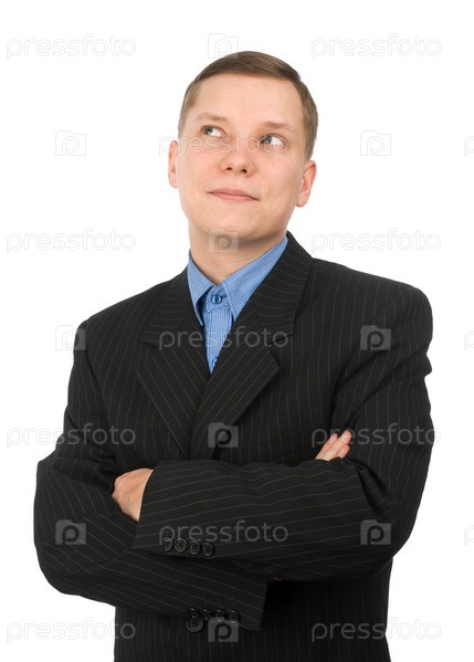 Вдумчивый молодой бизнесмен изолирован на белом фоне
