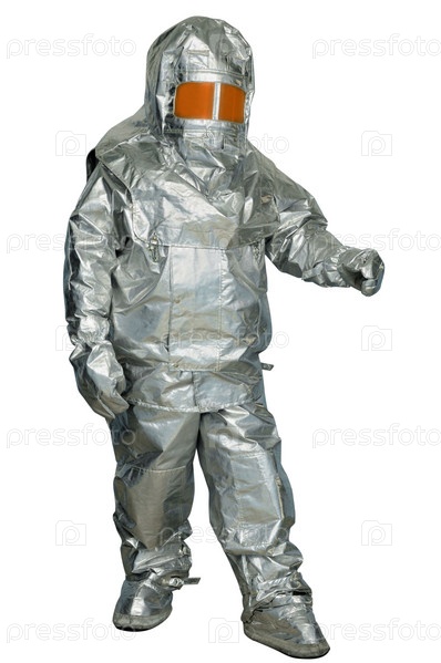 Человек в защитном огнеупорном костюеме