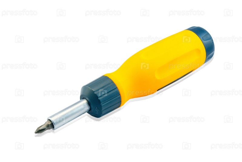Отвертка с желтой ручкой, изолирована на белом фоне