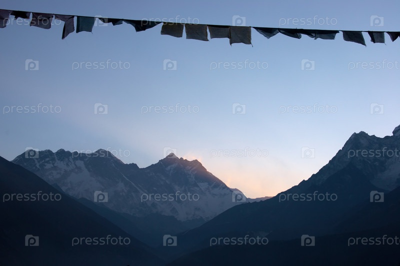Молитвенные флаги возле монастыря Тенгбоче, трасса Эвереста, Гималаи, Непал