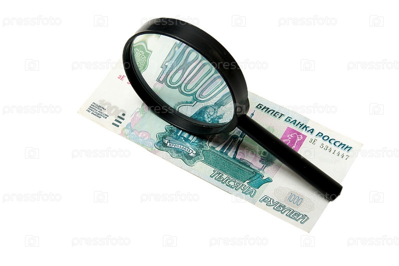 Банкнота и увеличительное стекло, изолированные на белом фоне