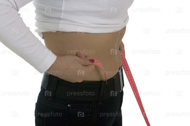 Женщина измеряет сантиметром талию