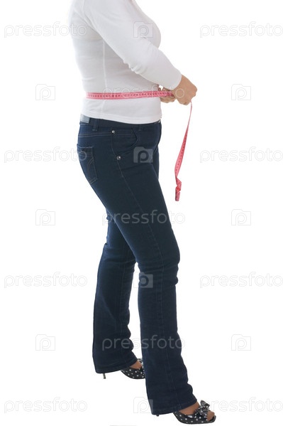 Женщина измеряет сантиметром талию