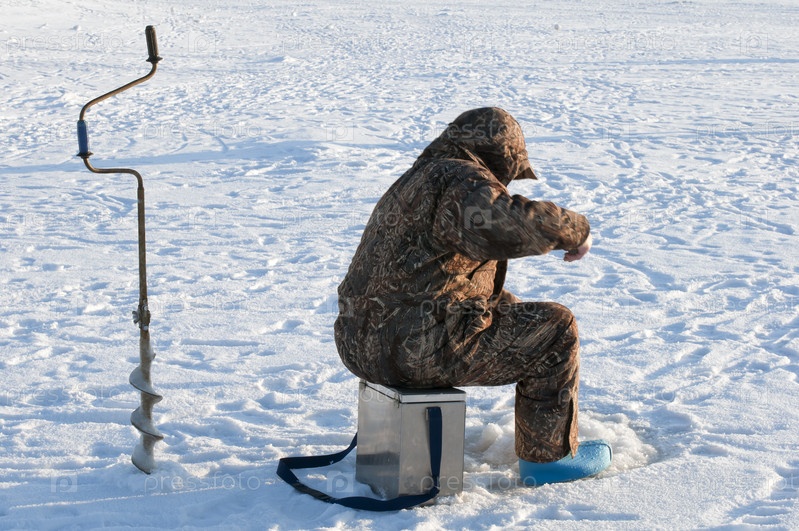 Мужчина рыбачит на льду