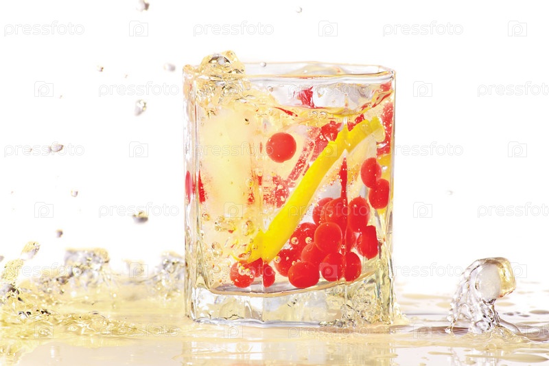 Стакан воды со льдом, лимоном и брусникой